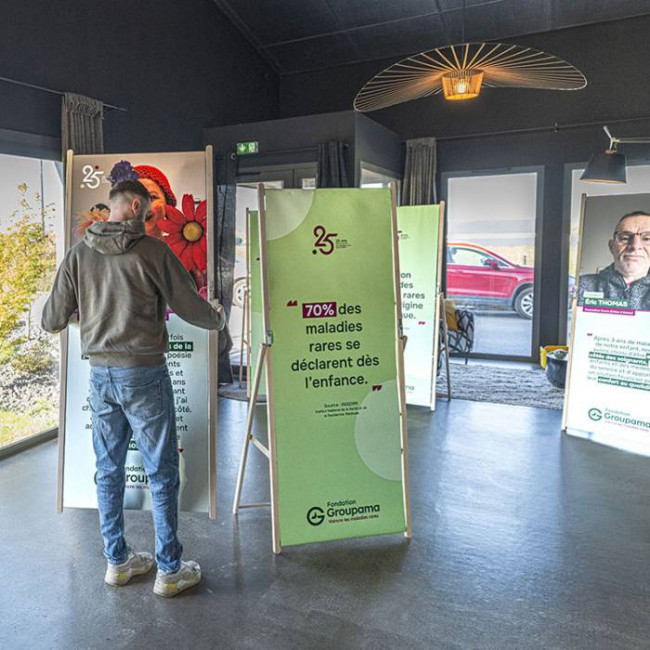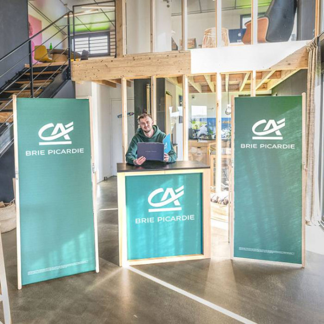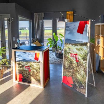 Rollup / Kakémono en bois - avec impression personnalisée sur toile - Dimensions pliées : H.180 cm x L.79 cm x P.57 cm