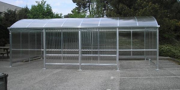 abri fumeur de 17ml de long x 5 ml de large fermé sur la totalité d"un coté,et à moitie sur l"autre avec toiture plate hauteur arriere de l"abri 2.90ml