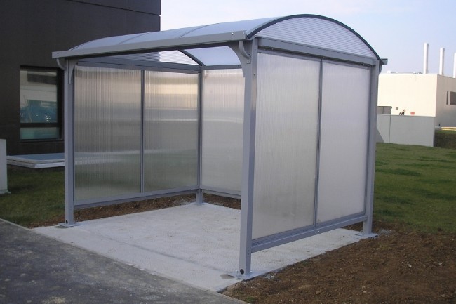 Les abris extérieurs en toit arrondi sont conçus, afin de permettre aux fumeurs de faire une pause cigarette à la protection des intempéries.