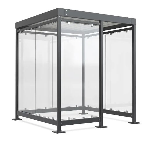 La structure autoportante en acier galva répond aux exigences de la réglementation anti-tabac tout en protégeant vos utilisateurs des intempéries.