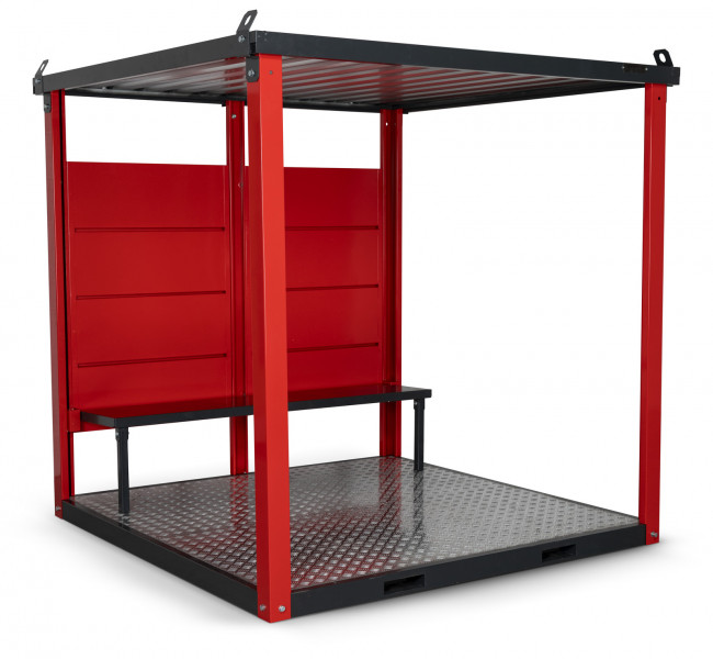 Cet abri fumeurs pour chantier possède des passages de fourche et des oeillets de levage pour le transporter.