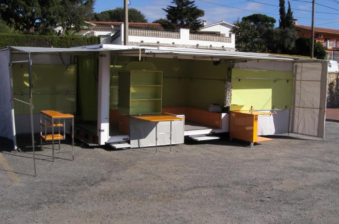 21/09/2020Petit camion magasin pour vente laine tricots artisannat. Étagères. Présentoirs support penderie et lumières et stores