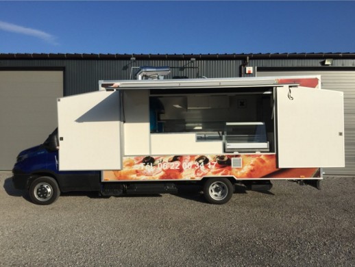 Grâce à ce camion pizza d'une longueur de 5m, largeur de 2m20,hauteur intérieur de 2m10 environs, vous bénéficiez de plans de travail plus grands et de plus d’espace pour un four à pizza plus grand.