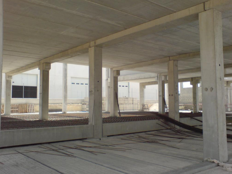 poteaux préfabriqués en béton armé toit monopente et des poutres entre les poteaux - surface : 900 M²