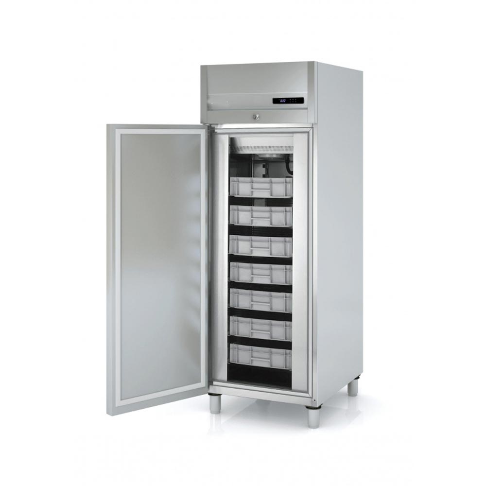 Cette armoire frigorifique à casiers est un matériel de cuisine monocoque conçu pour mettre au frais le poisson, la viande ainsi que les légumes.