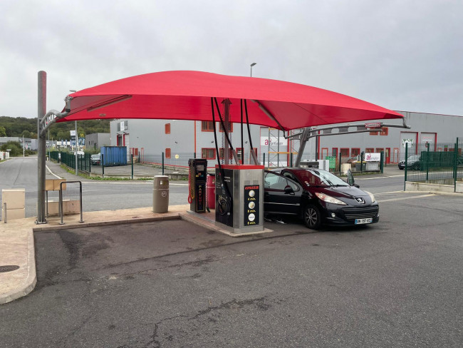 03/09/2020Abri à pompe à carburant. Long 6 mètres Largeur 2 mètres Merci
