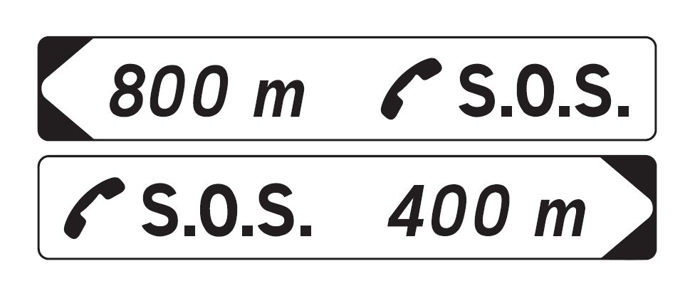 Panneaux de jalonnement vers un poste d'appel d'urgence DP1