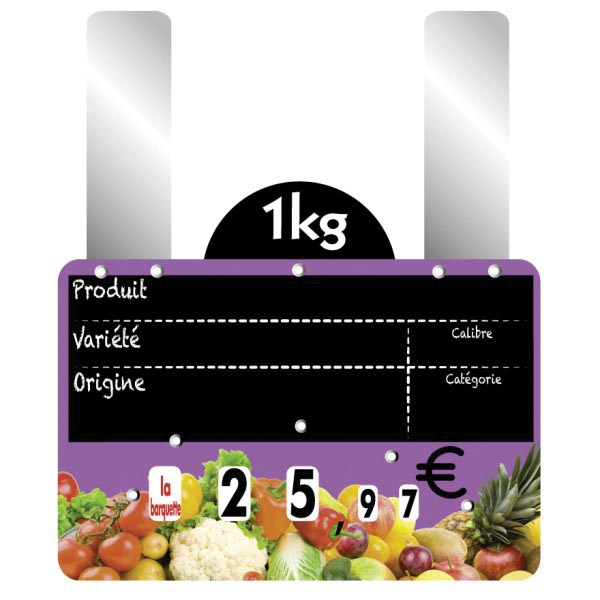 Vous pourrez y inscrire la description, l’origine, la variété, le prix et le poids de vos fruits et légumes.
