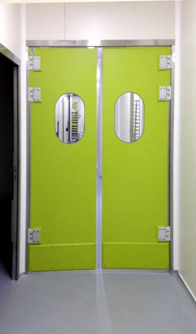11/08/2025Porte va et vient standard avec oculus pour un labo boucherie