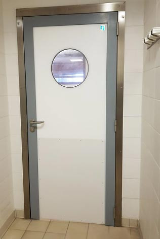 16/12/2025Bonjour, j"aurai besoin d"un devis pour 2 portes à hublot à un vantail de 0.93 en polyéthylène hydrofuge certifiées de qualité alimentaire teintées blanc et équipées de joint anti-pince doigt. Oculus en PMMA de diamètre 350 mm huisserie inox brossé en u pour cloison de 100, charnières inox