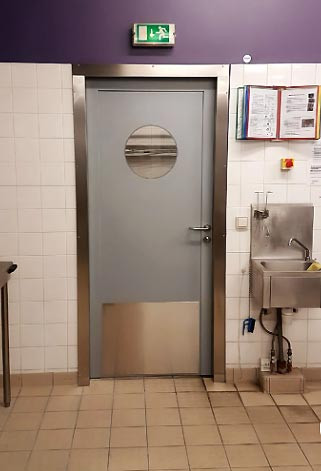 - Pour toutes les portes de la zone cuisine (Préparation froide, préparation chaude, plonge batterie, plonge, local poubelle, portes de communication vers la préparation chaude)(7u)