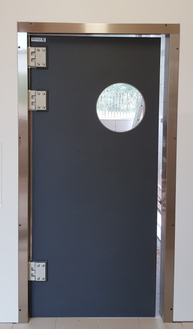 - 1 porte alimentaire hydrofuge simple vantail va et vient sur pivot avec hublot – passage libre 80cm Ht 2040