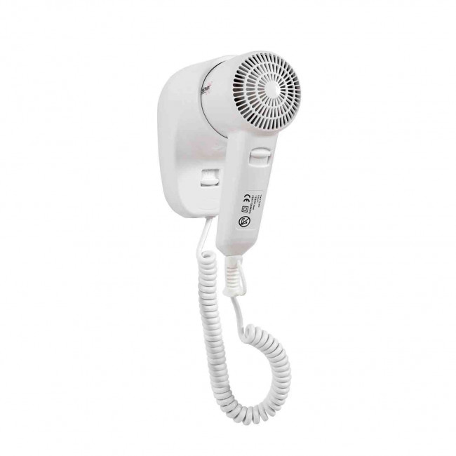 Ce sèche-cheveux mural de type pistolet automatique est équipé d’un interrupteur ON/OFF.