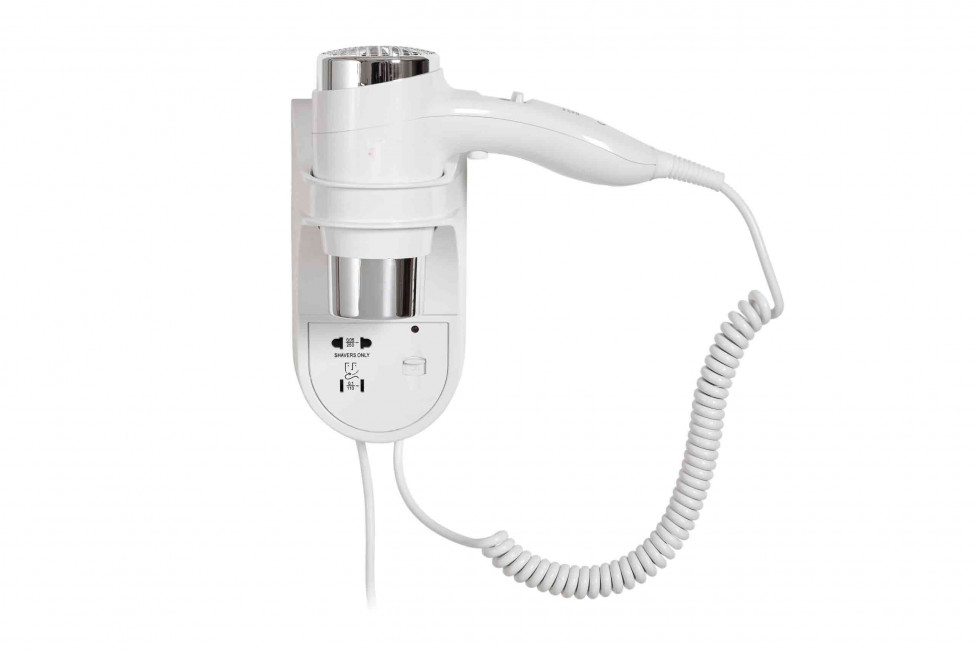 Ce sèche-cheveux avec support mural type pistolet automatique fonctionne avec deux vitesses et deux températures de sortie.