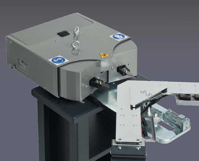 Sertisseuse d'angle de nouvelle conception dotée d'un système particulier de sortie des têtes permettant d'obtenir une puissance de travail équivalente aux modèles automatiques de plus grandes dimensions.