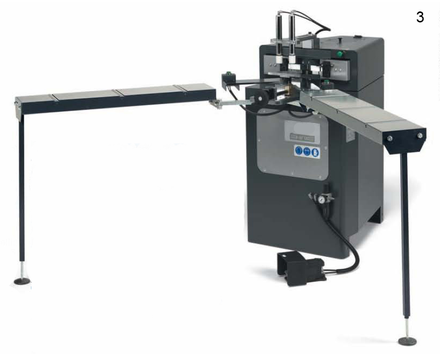 Modèle 1 (Voir photo 1) : - Sertissage chambres extérieures.- Il faut régler seulement la hauteur du plan support ouvrant.- Commande bi-manuel.- N.6 butées enregistrables.-
