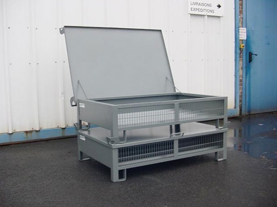 Caisse métallique grillagée avec couvercle - Charge maxi : 600 kg