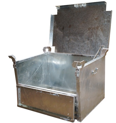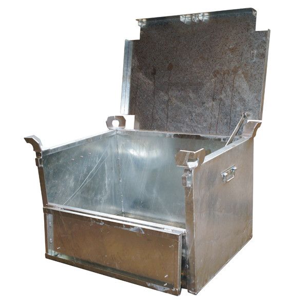 11/10/2019une caisse métallique élinguable pouvant descendre dans une trémie d"ouverture 900 x 900.