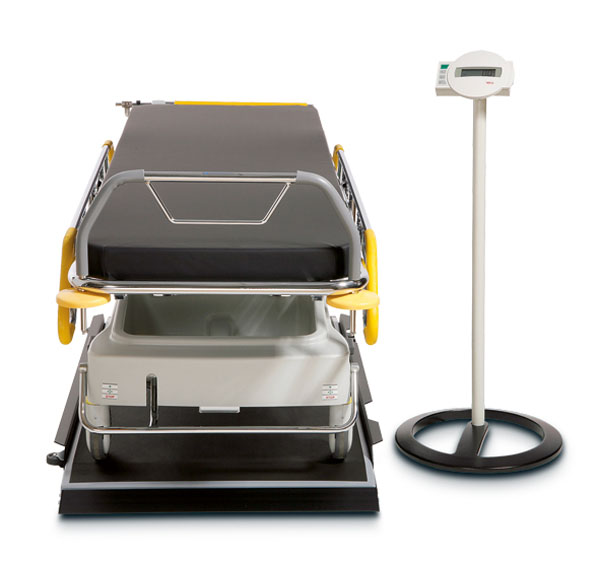 Généreusement dimensionnée, la plateforme permet de peser les personnes alitées sur tous les brancards courants.