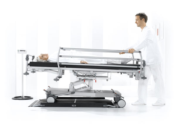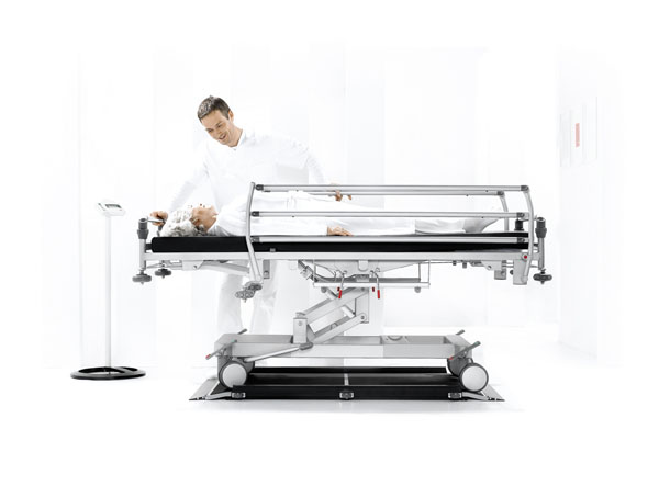 - Plateforme particulièrement spacieuse convenant pour tous les systèmes de chariots brancards et porte-civières courants.
