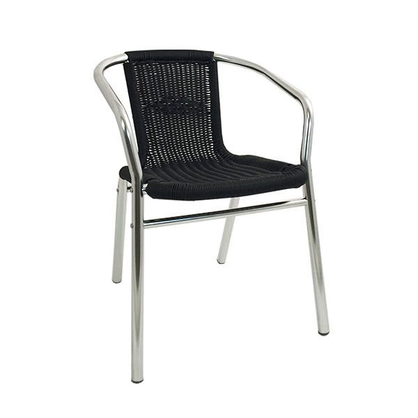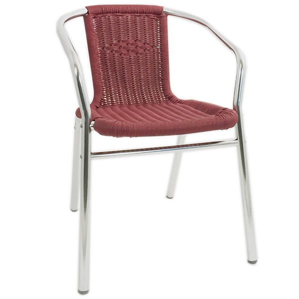 Il dispose d’une structure en aluminium avec un dossier et assise en tressage pvc rond armé d'un fil d'acier.