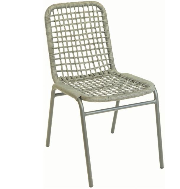 Ce mobilier de restaurant est réalisé entièrement en aluminium, avec assise et dossier corde.