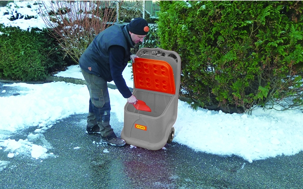 Ce bac à sel mobile en polyéthylène est une solution contre le vol de sel.