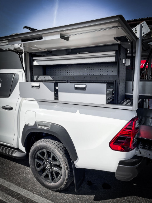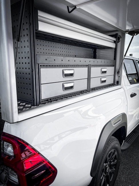 Je souhaiterais aménager mon Toyota hilux de 2022 avec un hard top équipé atelier. Je travaille dans la réparation d"engin forestier.