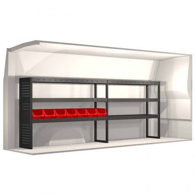 Ce kit d’aménagement a été spécialement conçu pour assurer une adaptation optimale ainsi que la meilleure fonctionnalité et sécurité possible. Il a été développé pour un usage professionnel, est flexible et est destiné à des métiers de services dans des domaines variés. Toutes les étagères à rebords sont équipées de tapis caoutchouc et ont une capacité de charge de 120 kilos.
