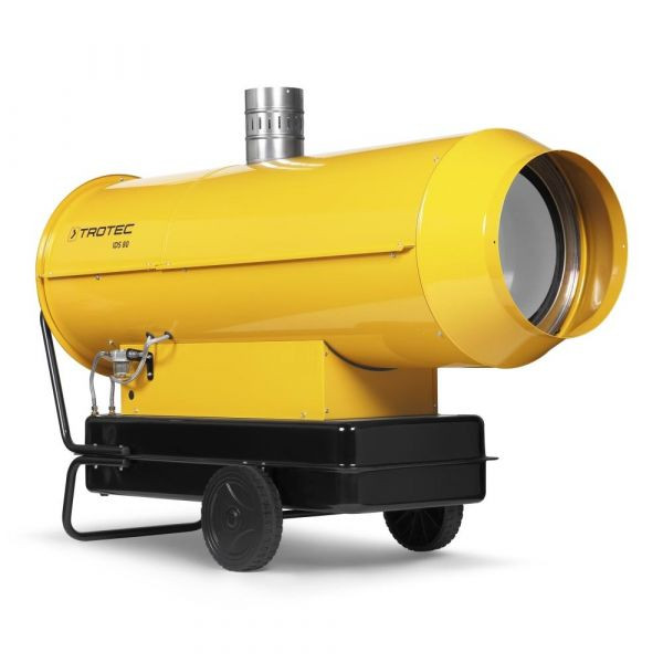 Grâce à la base qui permet de raccorder un conduit de cheminée pour évacuer les gaz de combustion, l'IDS 80 peut être installé directement dans les locaux. L'installation à l'extérieur est également possible : il suffit dans ce cas de relier le chauffage à une gaine. Peu importe où vous devez l'installer, l'IDS 80 est monté sur roues pour être facilement transporté.