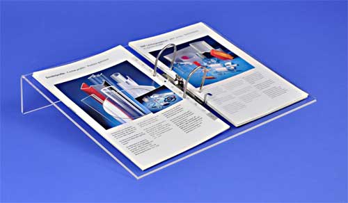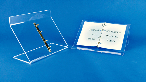 Ce support de documents est fabriqué en plexiglas transparent d’une épaisseur de 5 mm, découpé au laser et plié à chaud.