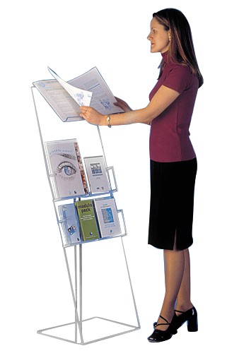 D’une hauteur de 130cm, ce présentoir d'accueil dispose de 2 réceptacles pour placer différents formats de brochures.