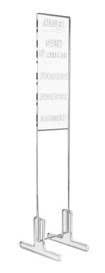Ce panneau de balisage est idéal pour votre accueil, se mêlant à tous les décors possibles grâce à la transparence du cristal de synthèse.