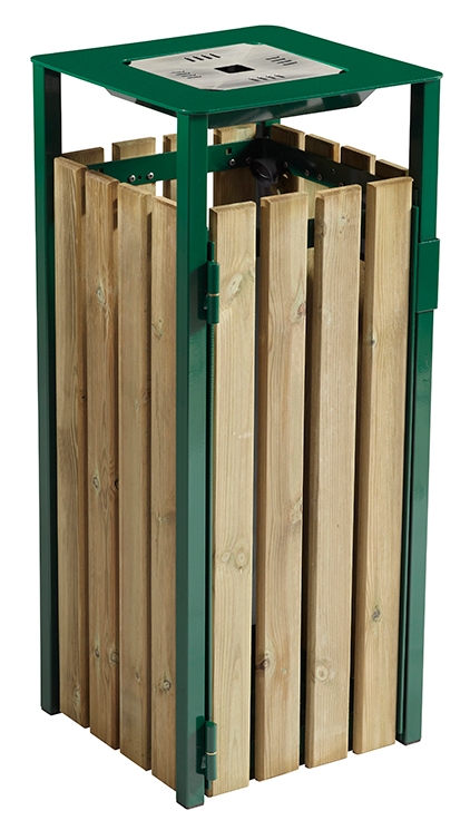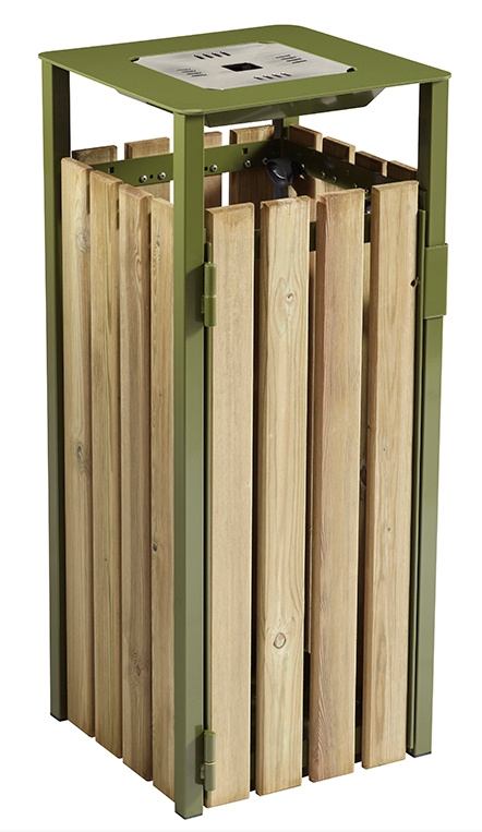 Réf. TC : 408284438Corbeille de ville bois 110L avec cendrier 110 Vert mousse 425 x 425 x 990