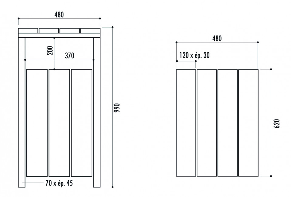 2 Corbeilles extérieure bois - 80 L - H.990 x l.480 x P.620 mm