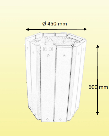 Cette corbeille de propreté hexagonale est en bois d’une capacité brut de 50L, dispositif vigipirate par retournement du panier.