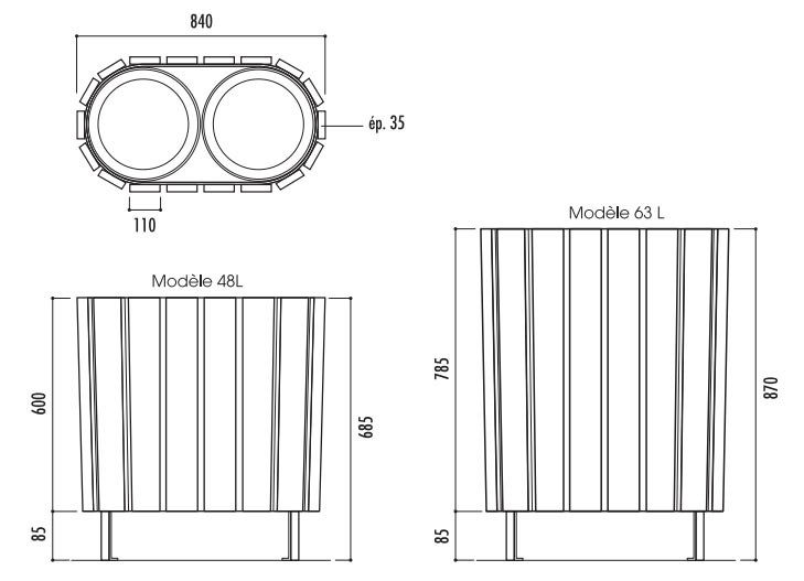 | Réf. TC :698641513 | Corbeille double flux bois pin - tri sélectif - A sceller | 2 x 63 | Avec couvercle | 39,5 | -