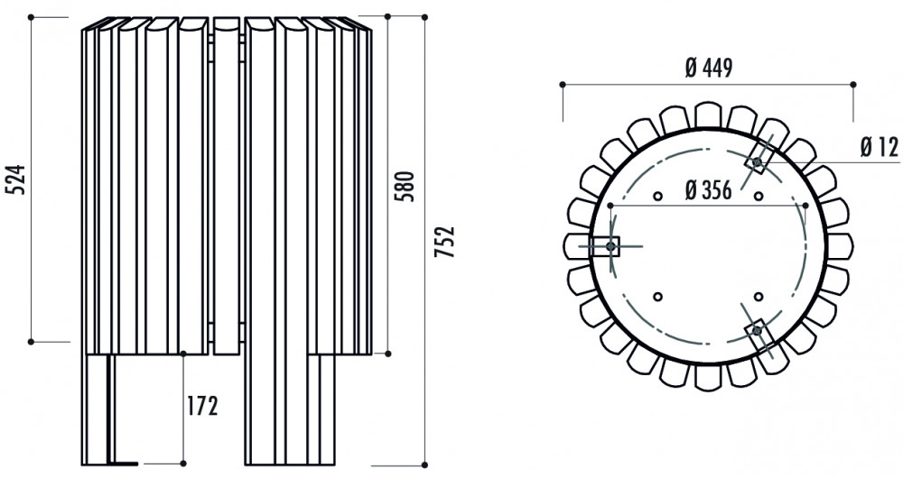 - Entourage en lattes de bois exotique avec traitement antiparasite, fongicide et hydrofuge ou en pin traité autoclave certifié FSC