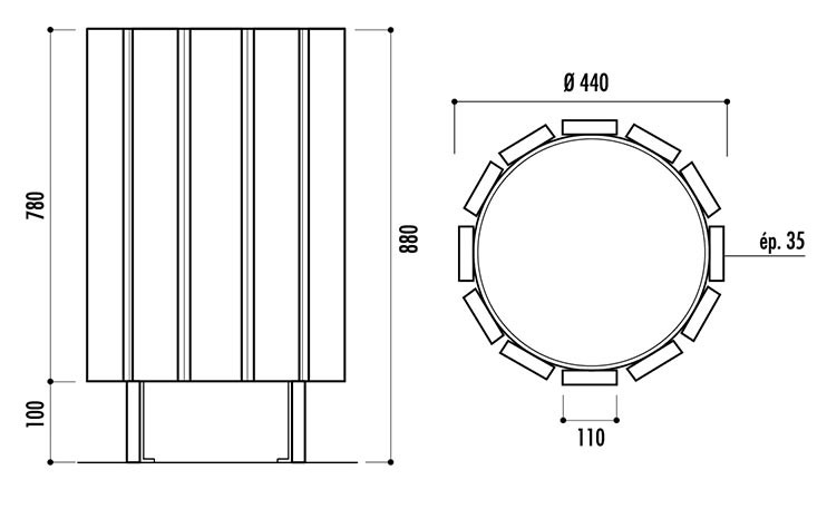 Capacité : 63 L Dimensions : Ø 440 x H.880 mm Lames en pin traité ou bois exotique Coloris : Pin ou Bois exotique A sceller