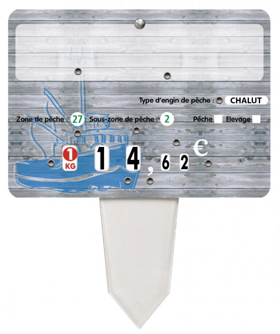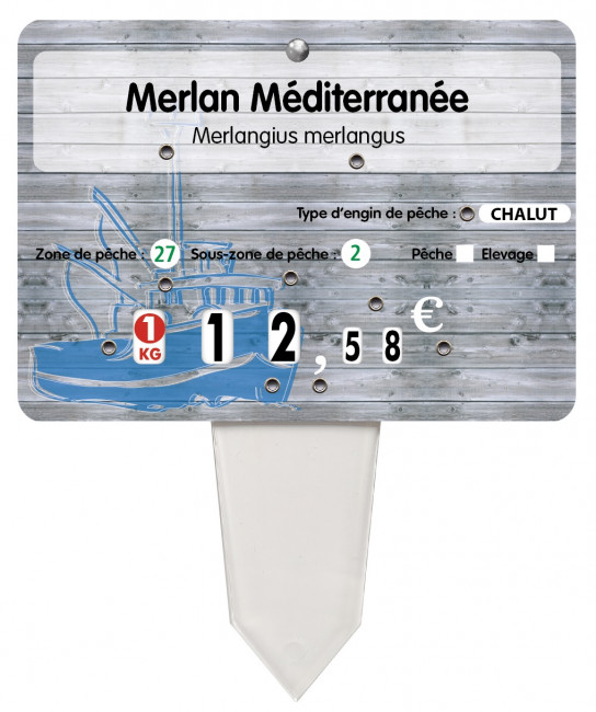 Cette étiquette poissonnerie est conçue pour affichage des prix et d'autres informations utiles au client.