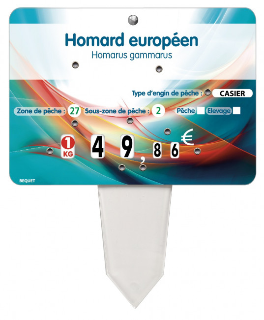 Cette étiquette de prix pour poissonnerie à roulettes est destinée aux commercants de poissons.