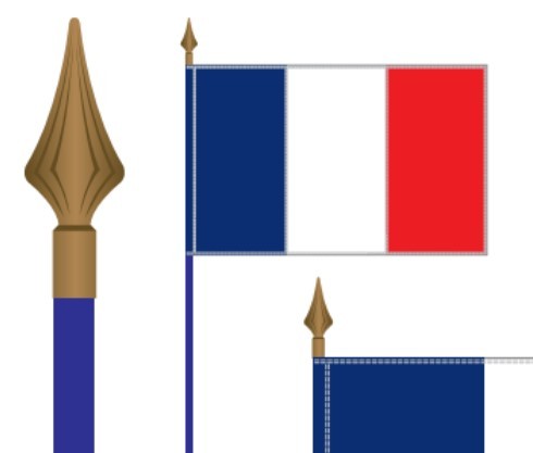 Ce drapeau du pays FRANCE, montés par fourreau sur une hampe robuste gainée de plastique bleu et terminée par une lance plastique de couleur bronze doré.