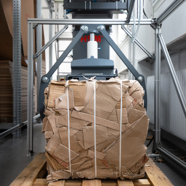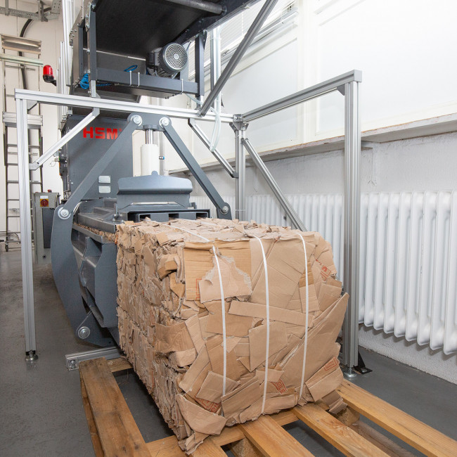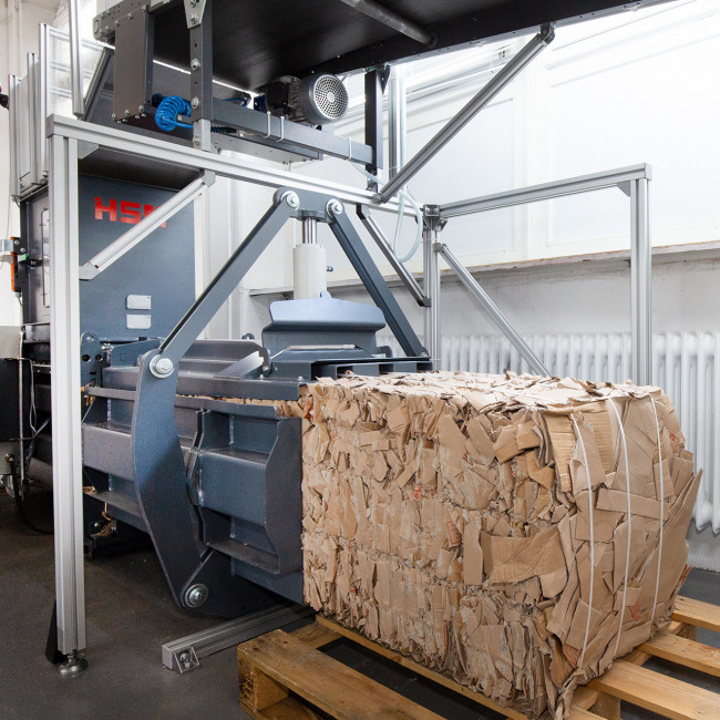 Cette presse à balles à canal 82 kN est conçue pour compacter les cartons et papiers légers.
