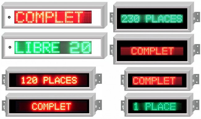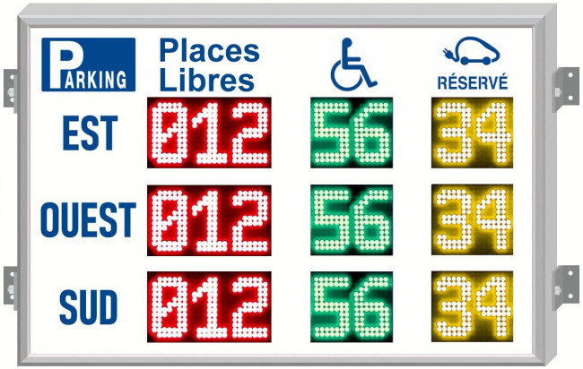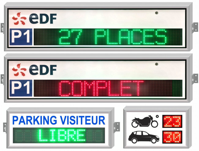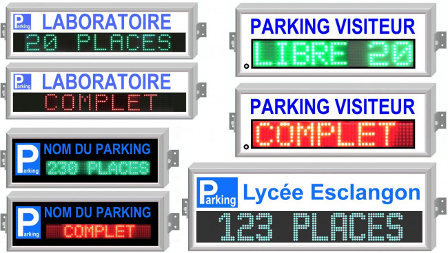 Nous fabriquons divers types de panneaux d'affichages pour les parkings, destinés pricipalement a indiqués un nombre de places restantes ou à défaut si le parking est complet.