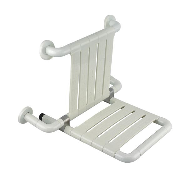 Ce siège de douche avec dossier constitue une aide à la toilette appréciable pour les personnes à mobilité réduite.