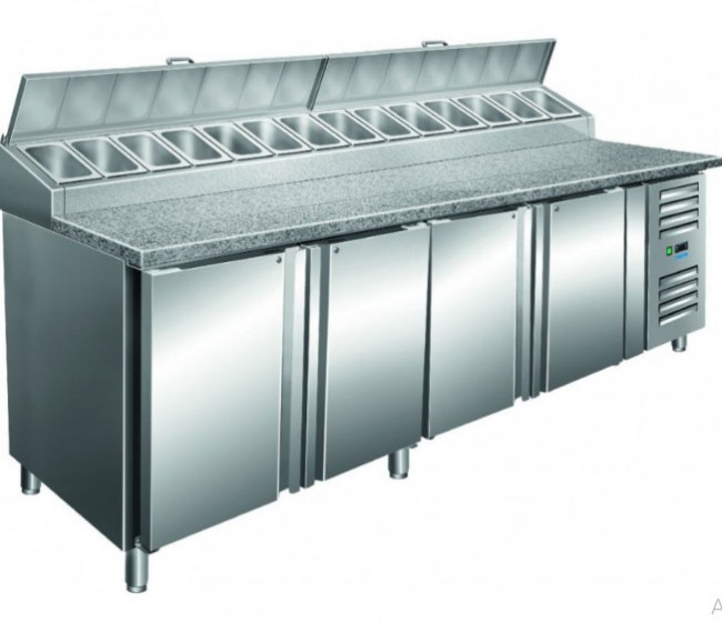 Le meuble à pizza avec plan de travail en granit est un équipement de cuisine professionnelle conçu pour des préparations culinaires d'une grande commodité pour les établissements de restauration et hôtellerie.