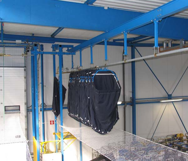 La mise en place d’une solution aérienne permet de libérer cet espace, optimiser le traitement du linge (flux, lavage …), et augmenter la capacité de stockage ; l’espace aérien étant généralement un espace vide.