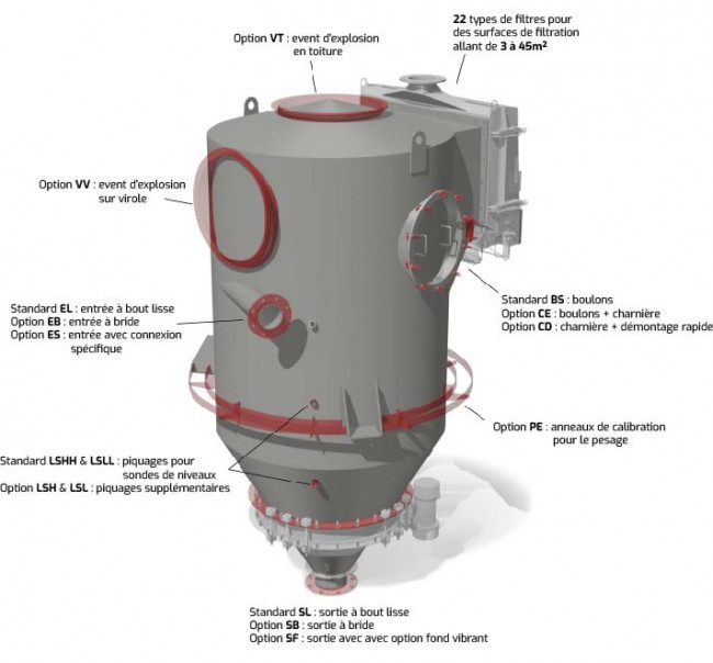 Le Récepteur Filtre NEU est conçu pour réceptionner, stocker et doser des produits pulvérulents. Il assure la séparation produit/gaz en fin de circuit de transport pneumatique. Il convient à toutes les industries. Sa construction en inox et sa conception hygiénique sont particulièrement adaptées aux applications alimentaires.