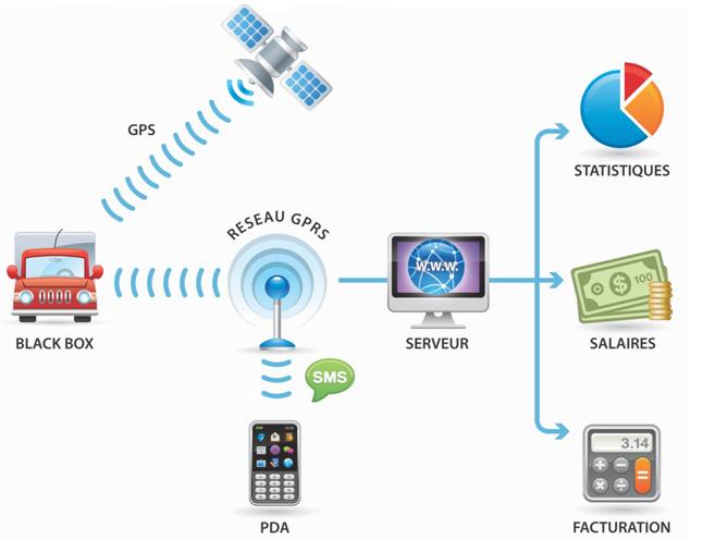 géolocalisation pour véhicules assure une collecte en temps réel de l’activité mobile et offre les moyens techniques (Internet, GSM, PDA,...) pour communiquer, suivre et gérer le matériel roulant et le personnel itinérant.