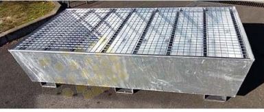 Cuve de rétention en acier galvanisé pour 2 IBC d'un volume de rétention de 1000L permettant le stockage de substances polluantes et de liquides inflammables.